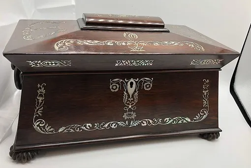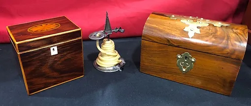 Dr. John E. Crews Antiques offers a wide range of English boxes—dating from 1770 to about 1880—including tea caddies, workboxes, and writing boxes. The boxes listed on this page represent a small portion of our available inventory. We typically have 350-400 boxes of all styles and at all price points available to our customers.